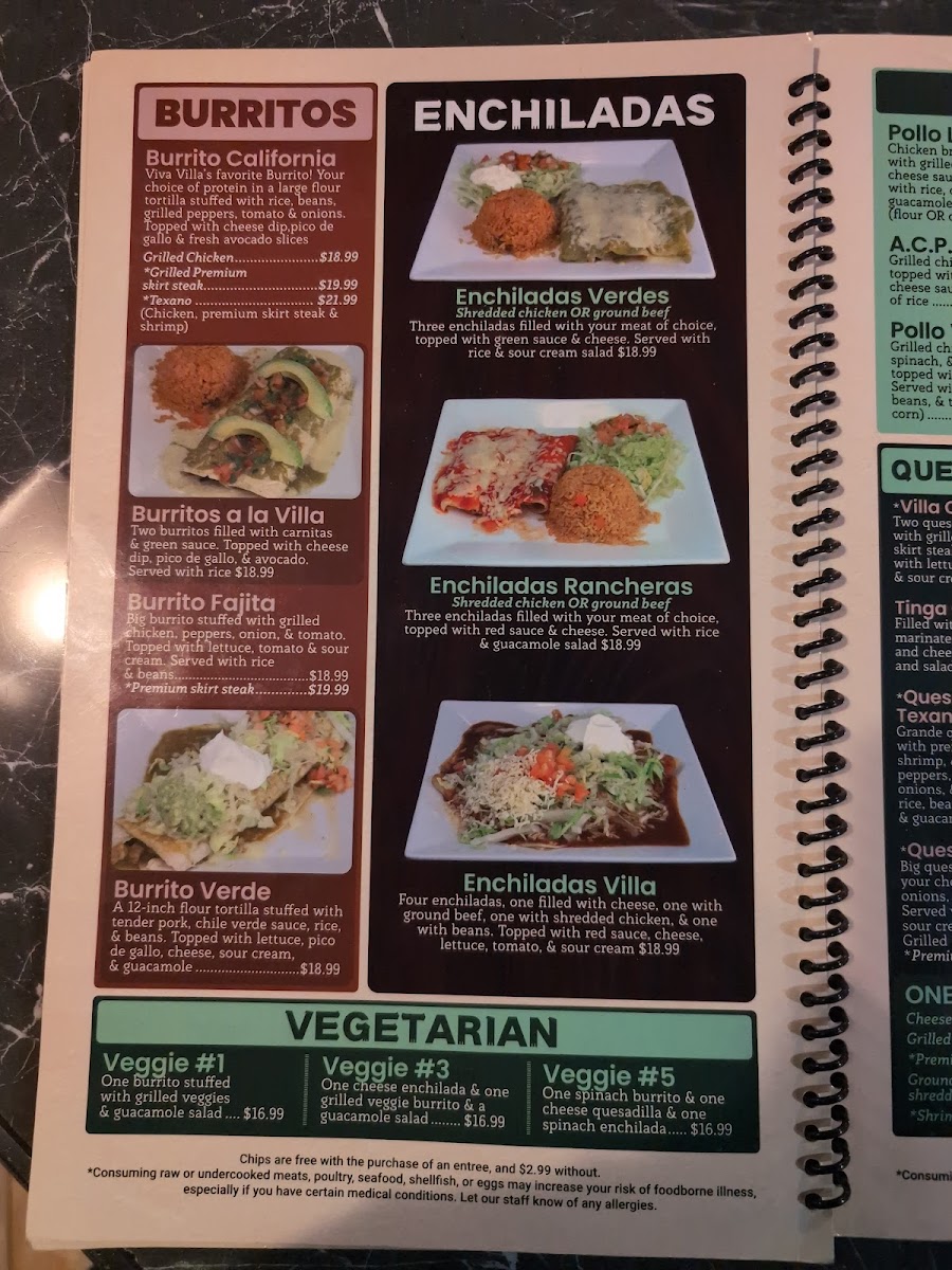VIVA VILLA MEXICAN GRILL Menu